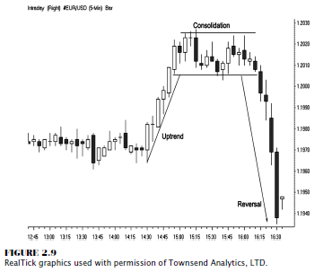 look at the euro currency chart in Figure 2.9, we see the market develop into