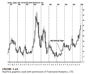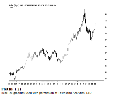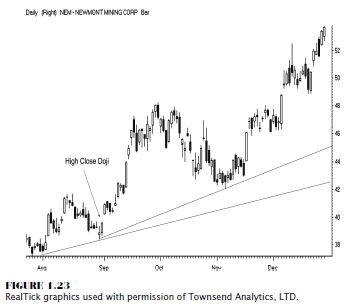 Look at the price move for Newmont Mining in Figure 1.23. This stock took off