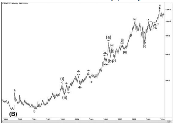 Figure 7.9 Weekly Gold Displaying an Unfinished Wave (iii) of Wave (C)