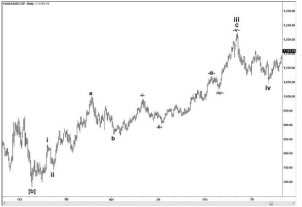 Figure 7.10 Daily Gold Displaying an Unfinished Wave [c] of Wave [iii] of Larger Wave (iii)