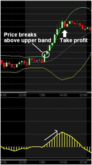 the price exceeds the upper band, it means the upside momentum is strong enough