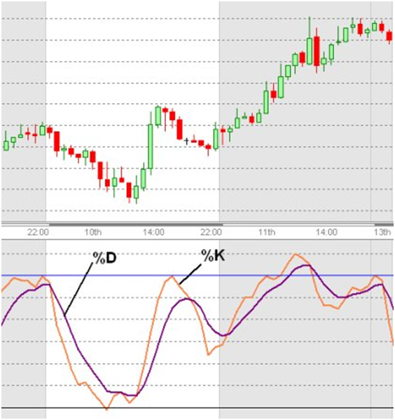 interpret that as a buy signal. A sell signal is when %K and %D lines cross