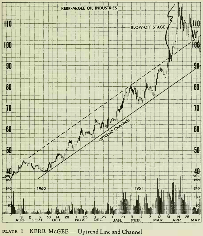 the advance. In April, 1961, prices broke through the upside of the channel and