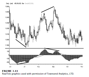 histogram bars to help confirm a turn or a change in trend. Figure 3.12 shows