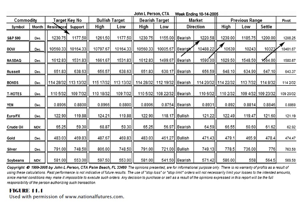 so I can see what the past week’s high, low, and close were. The pivot point is