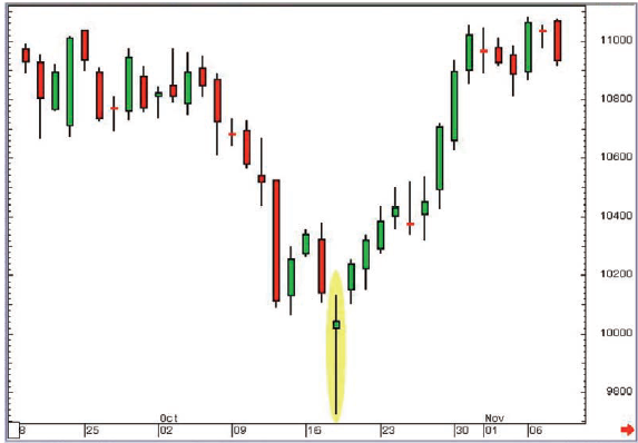 see clearly from this chart that the Hammer candlestick did indeed call an end