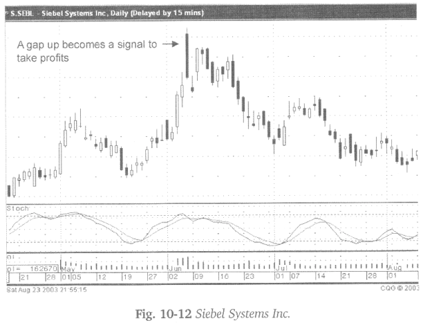10-12, Siebel Software is another example of the gap up at the top. A sell stop
