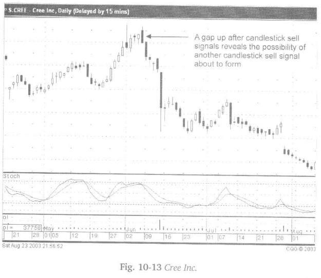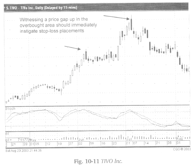 in Fig. 10-11, the Tivo chart, the gap up when the stochastics were peaking out