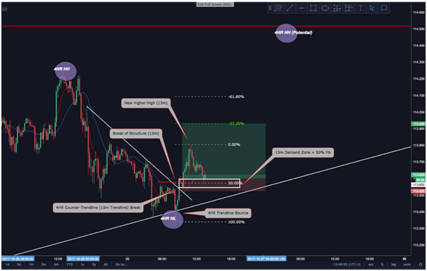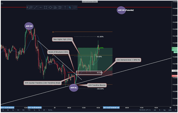 retrace on the 15m chart back to the newly formed 15m demand zone, I drew a