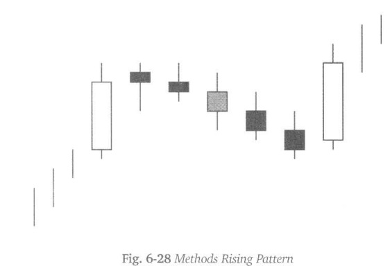 The Methods Rising Pattern is a derivative of the Three Methods Rising pattern. The Three Methods Rising pattern is a candlestick continuation pattern.